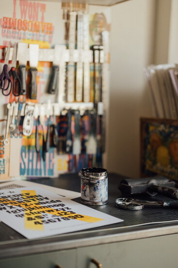 While this is mostly a solo endeavor, there are a few other letterpress printers in the area, including Brian Wood, who provides space to house Braun's larger press and additional type at his shop, Dogs and Stars. Steve Matteson also runs the Book Arts League at the Groundworks Art Lab, which is a fantastic resource for anyone interested in trying letterpress.