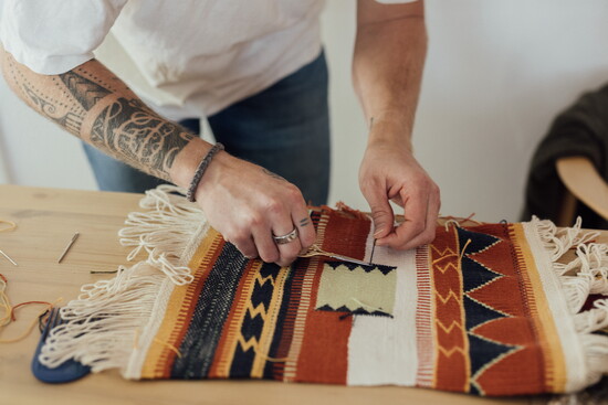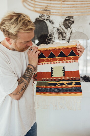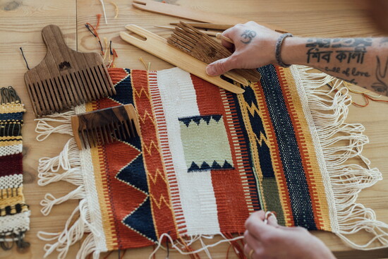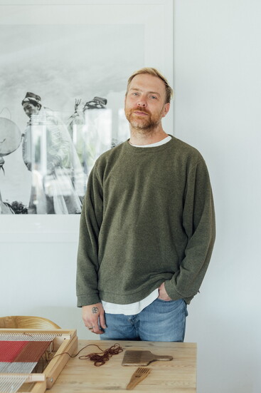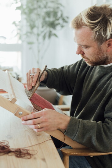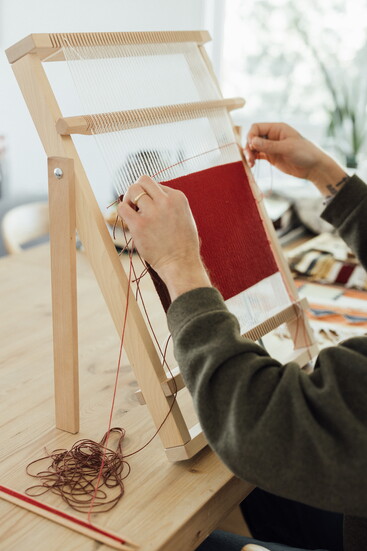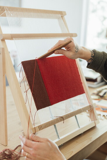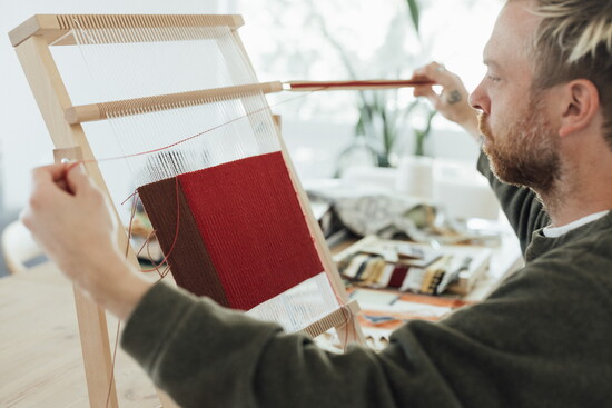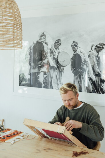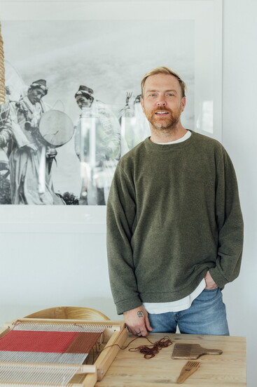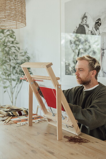 He’s always used music to express himself, but at the end of the day, it's also his job. Weaving lets him step away from the studio and keep being creative. He especially enjoys creating alongside his sons, who will hop in his lap and help him at the loom.
