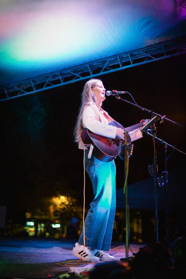 At 16 years old, Lindsay Hayes is a singer and musician who has already released three songs and performs regularly at live shows, events, concerts, and restaurants. She also enjoys playing at the farmers’ market on Saturday mornings. “I love getting to see the community around me,” she shares. “They get to enjoy the music, and I get to enjoy seeing them listen to it. I like watching in real time as people relax in the slow-paced market.”