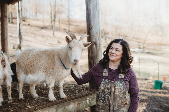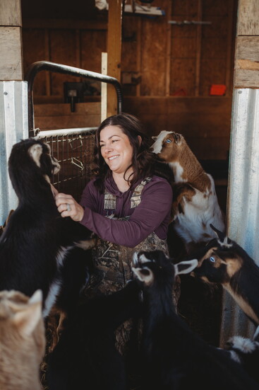 During kidding season, Ashley occasionally sells milk for pet consumption and looks ahead to exploring cheese and soap making. The farm is also home to mature laying hens and two steadfast Great Pyrenees livestock guardians, Cotton and Opal.