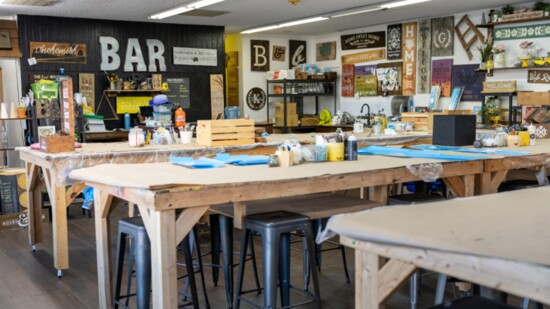 With the vast antique shopping downtown, Board & Brush’s signature rustic farmhouse style blends well with the area’s feel while contributing a unique activity-based shop to the mix. At the studio, patrons complete personalized projects with the direction of trained staff in a relaxing and friendly environment.