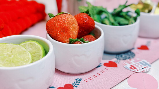 - Slice a strawberry into a heart shape and set aside for garnish.