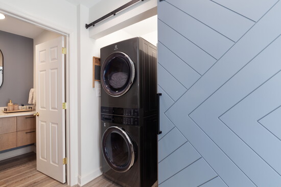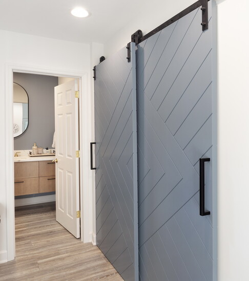 Beyond the kitchen, the renovation extended to the laundry and half bath for a cohesive aesthetic. Custom Dwellings reversed the laundry access to the stair hall and concealed the entry with tandem barn doors, carrying the herringbone detailing from the kitchen island into the space. Townhomes bring unique challenges as semi-attached units, but the team coordinated carefully to maintain plumbing and electrical service to adjoining residences. Working closely with Cobb County Building Department officials, the "Build Team" ensured code compliance and, most importantly, client satisfaction. The result is a thoughtfully crafted kitchen and lower level that blend beauty with function—spaces where everyday living feels extraordinary.