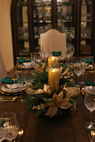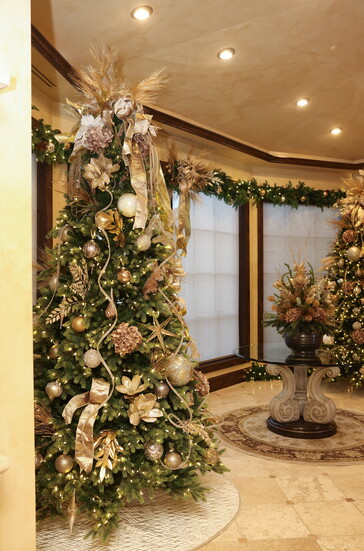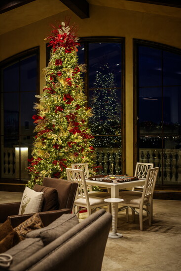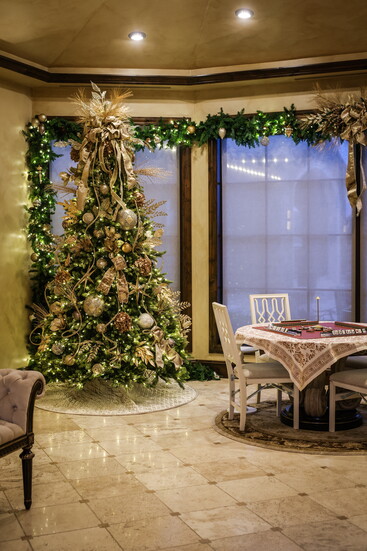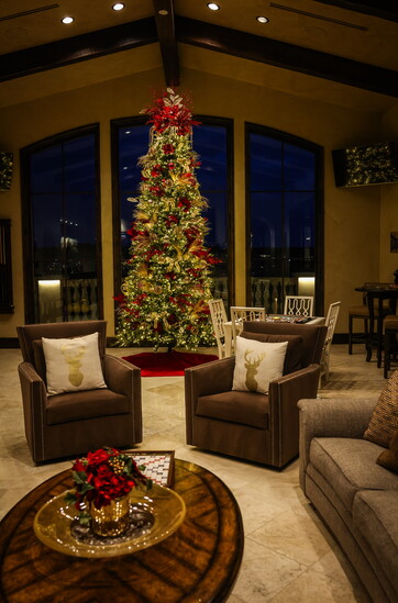 This year, Michelle reimagined her holiday décor to encourage connection and conversation. After years of showcasing one statement tree in the foyer, she decided to move that centerpiece into the bar area and introduce two trees in the entryway instead. “The trees now complement the glass table where we play mahjong and enjoy cocktails,” she says. “It’s not just a show space anymore, it’s a cozy, festive area to play games and socialize.”