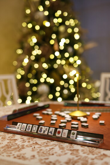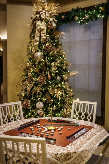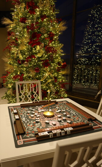 That sense of community and joy shines brightest in Michelle’s new mahjong holiday space, a fresh tradition she is excited to continue. “This is the first year I wanted to create a mahjong holiday experience in our home,” she says with a smile. “The glow of the tree lights mixed with the laughter and gentle clink of the tiles creates the coziest atmosphere. I have a few Christmas-themed tiles and mats, but also some neutrals that fit my décor. It’s the perfect blend of relaxation and connection, a quiet moment of fun that still feels elegant and celebratory.”