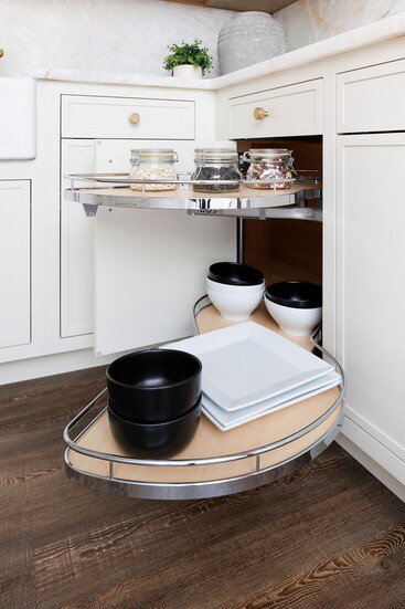 Cabinetry plays a defining role. Homeowners are drawn equally to sleek frameless designs and square inset cabinetry, both offering a refined, furniture-inspired look. Light and warm neutrals remain the foundation, with blues and greens adding personality. Interior cabinet features—organized drawers, lighted storage, and pull-outs for spices, waste, wine, and specialty items—help keep the space visually calm and highly efficient.