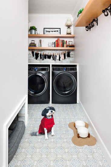 Across the country—and especially in Atlanta—homeowners are reimagining the in-between spaces that support daily life. Laundry rooms are becoming larger and more refined, with built-in washers and dryers, folding counters, cabinetry, and dog-washing stations. Mudrooms feature intentional storage with mail and key drop zones, charging stations, benches, and coat hooks. Home offices are evolving as well, with unused areas transformed into flexible, multipurpose spaces that balance productivity and comfort—often incorporating discreet, built-in pet beds.