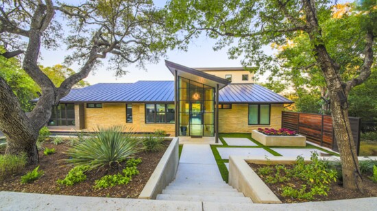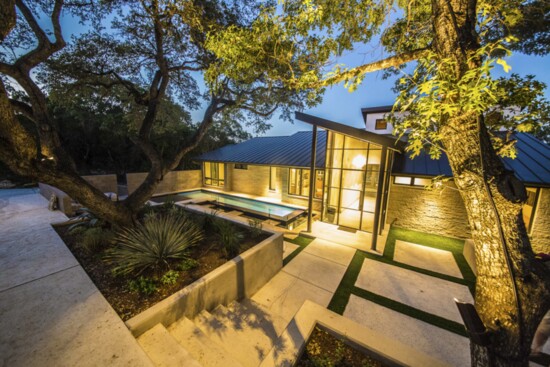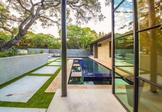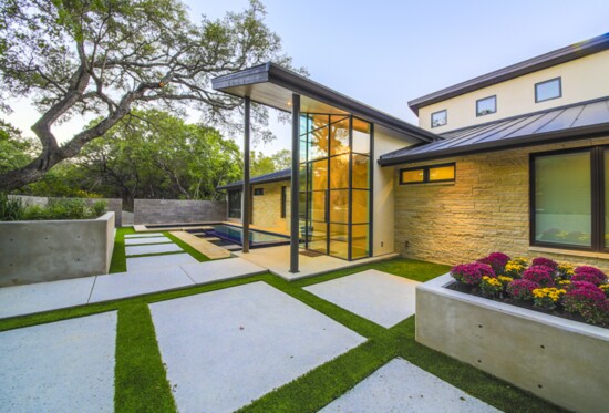 "I love being challenged. I have the mindset that we will come up with a solution," explained Manning, " One issue that local architects are faced with, are new flood plain regulations. Older houses built around Lake Travis often have to be built with the finished floor elevation much higher. This presents unique challenges calling for creative solutions." With innovative elements like a folded plane ceiling and a steel and glass front entry. these features not only enhance the home’s aesthetic but also cleverly address the challenges he mentioned.