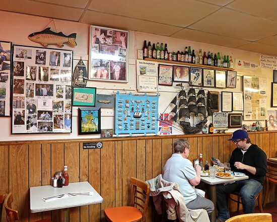 Like Evie’s and Duly’s, Scotty Simpson’s screams old-fashioned charm. The wood-paneled walls are covered in photos, maritime memorabilia and mounted fish. The carpet, wood, vinyl chairs and unassuming tables are a throwback in time, adding to the old-school vibe. It’s another classic case of “never judge a book by its cover.”