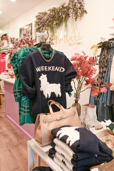 The boutique offers a diverse selection of clothing brands. For autumn, the popular colors are chocolate brown and burgundy. Suede pieces are huge sellers, as are Chiefs gear, tailgate outfits, and animal prints. Some of the shop's best-selling items feature various prints, such as teddy bears and dogs.