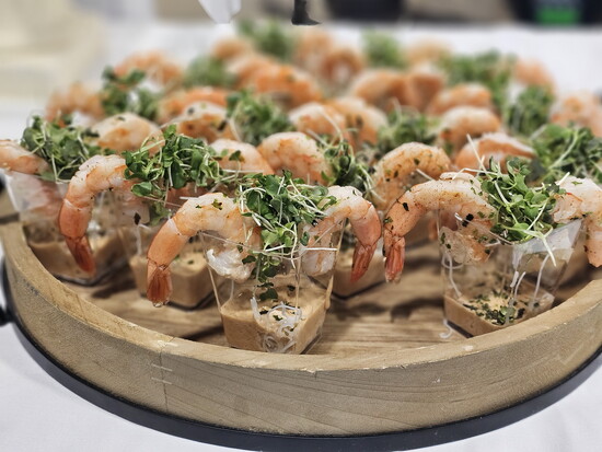 - When ready to assemble, season shrimp to taste with salt and pepper, Szechuan pepper seasoning, and nori furikake seasoning.