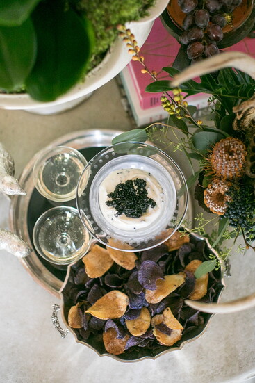 7 oz caviar (we suggest American Paddle Fish Caviar from local producer Kelly’s Katch Caviar, highly recommend for taste and value)