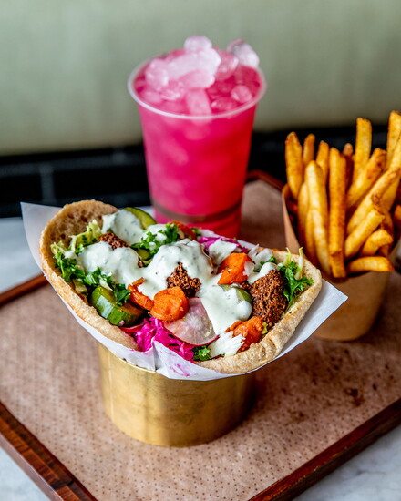 And when you’ve gotten through the line, don’t skimp on the “extras.” Crispy fries, warm pita, decadent cookies, Boylan soda, and minty pink lemonade round out your meal.