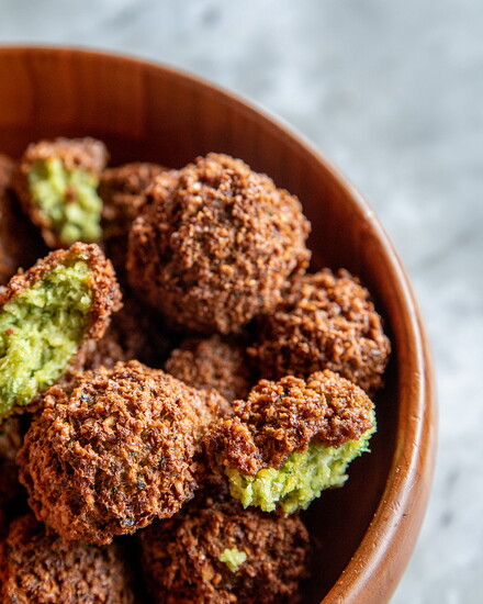 Falafel: A vegetarian option prepared during each shift, served hot and fresh.