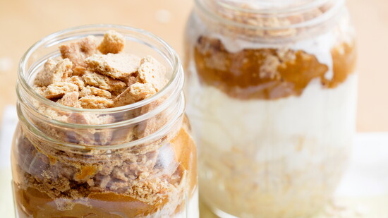 Mix all ingredients in a glass jar. Cover and refrigerate overnight. In the morning, stir well, add toppings and enjoy—cold or warm!