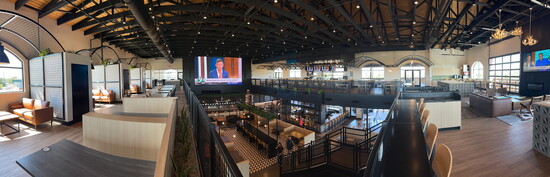 In the center of the complex, a 25-foot LED screen keeps the energy buzzing, complemented by 32 additional television screens, private event spaces, and weekly live performances.
