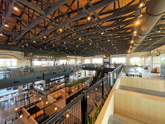 For flexibility, the Collective doesn’t use traditional servers. Guests scan a QR code at their table to access menus, place orders and get a text when it’s ready—all on one tab, no matter how many restaurants a family samples from. Guests can also walk up and order directly from each restaurant. Seating spans patios, a deck and two indoor levels, giving guests great vantage points to catch the action—and free Wi-Fi at every table to stay connected.