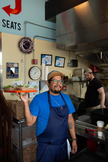 I got a three-taco combo, served shell-less to keep it keto. The steak was slow-braised. The shrimp was seared and well-spiced. And the mushrooms, smoked with chipotle and paired with arugula, were maybe the tastiest of all. Everything hit with the kind of flavor you usually only get in high-end restaurants. And yet here it was in a $12 combo in paper boats, in a dining room that doubles as an upstairs hallway.