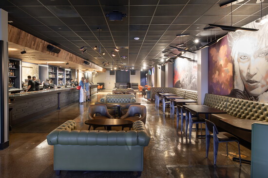 Walking past the three-barrel brewing system, guests enter into the Barrel Bar—a speakeasy-style bar with plush leather chairs and artwork by Connecticut muralist Ben Keller (including Johnny Depp’s Mad Hatter, a cheeky wink to Danbury’s hatmaking history). Warm brown and green tones, industrial lighting, and wood accents give the whole place a sleek, modern-meets-vintage, sporty-meets-stylish vibe.