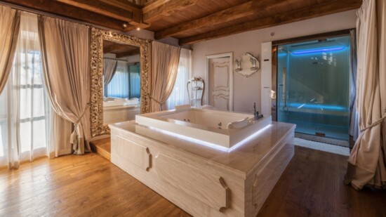 As the saying goes, “Love is in the air” and it’s also radiating throughout Relais La Corte Dei Papi, especially inside the 16 on-site guestrooms, particularly Suite 11. Walk through the double antique doors to view a deluxe 538-square-foot renaissance-themed room with gold trim antique furnishings. The “aha” moment when I realized the resort truly epitomized luxury was seeing the private in-suite spa area where one can fully relax and rejuvenate, uninterrupted, in the comfort of their own room.