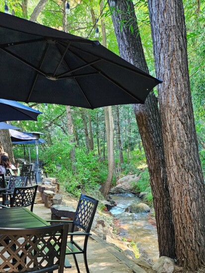 Perhaps the most special area of the restaurant is the creekside dining patio. Situated at the intersection of Cascade Creek and French Creek, the sound of water and singing birds adds to the inviting nature of the space. Dine in the shade of towering pines, Aspen trees and market umbrellas. Lucky visitors have spotted deer, foxes, owls, beavers, bob cats, and yes, an occasional bear in the adjacent forest. The patio seats roughly 100 people and reservations are recommended.