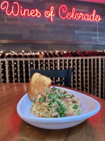 “One great thing about Wines of Colorado is that we also operate as a liquor store,” Arin says. “You can buy bottles of our wine or spirits to enjoy at your table and/or some to take home. We also offer wine flights from a pre-built menu or you can get creative and choose four pours from any of the wines we sell.”