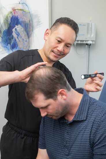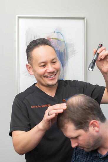 Additional services include treatment for acne, psoriasis, eczema, hidradenitis suppurativa, chronic rashes, and medically managed hair loss. For patients requiring procedural restoration, Dr. Le performs SmartGraft hair transplant procedures. The clinical team also includes experienced physician assistants Grace Chen and Ella Gift, who expand access to care.