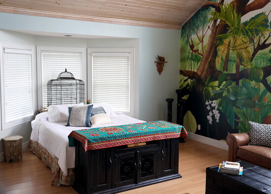 Cabo Casa is an escape influenced by Mexico's bright colors and architectural touches. Bombay Getaway brings India to Missouri with textiles and curated treasures she and her mother collected abroad. From the moment guests step into the homes - sometimes even before they step in - they say they feel transported. That’s intentional. She landscapes the property with banana trees, elephant ears, and tropical textures, starting guests' cultural experience the moment they arrive.