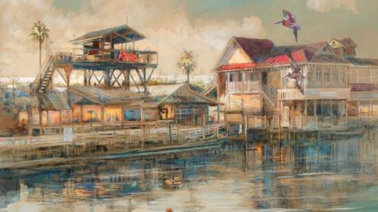 In 2020, O’Brien moved from his home in Baltimore of 56 years to Charleston. The undertow, he says, caught his ankles and the low country vibe was calling his name. Walking along the marshes, the tide displayed an abundance of colors, shapes and textures which were all different depending on the time of day he watched. These observations are present in his vibrant paintings of life in the marsh. As an accomplished artist, he professes that he is still a student of art, continuously studying the master painters. To challenge himself artistically, he paints pictures from his mind instead of photographs. What an incredible task to take all of the stimuli his brain is processing and let it flow through his paintbrush to the canvas. Each cloud, each heron feather, each window, each ripple of the water seen in the mind of an amazing artist. And now we can also see what this artist imagines in more colors than the crayon box can hold.