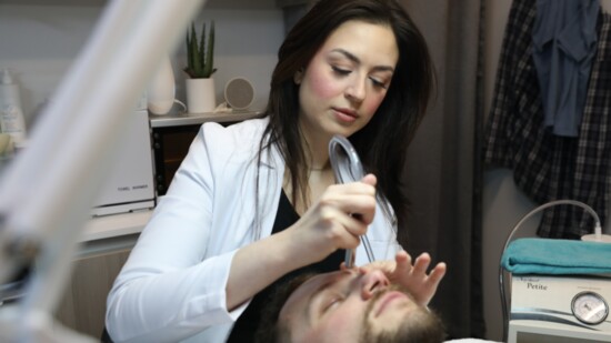 “We try to put men at ease when they come in, especially if it’s their first time,” she explains. “Because of things like facial hair, we use a lot of hot towels and steam, and electrical modality called High Frequency to kill bacteria and stimulate healthy hair growth. Add in the soothing face mask and upper body massage, they find the whole process very relaxing.”