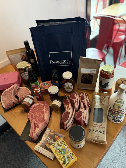 - Owner Matt Storch loves making chef-curated bags ($375-$550) for customers at Saugatuck Provisions. This one has premium meat, pasta, sauces, tinned fish, and so much more. Pictured, $399, at 580 Riverside Ave., 203-557-3655.