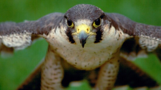 Peregrines are cliff-dwellers, and have adapted to life on tall buildings and bridges. Breeding pairs usually mate for life. When hunting, peregrines dive on their prey at speeds 200-plus mph, making them the fastest animals on Earth.