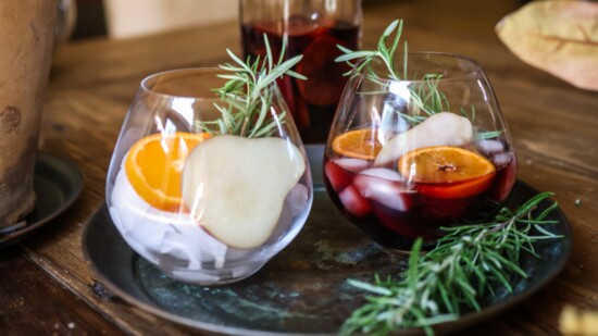 When ready to serve, pour Sangria into glasses, and garnish with additional oranges and rosemary.