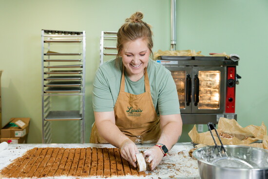 Lara gained a love of baking at a young age from watching her mom bake from scratch. As she got older, her love for baking only grew. Lara found any opportunity she could to bake for her friends and family. During the pandemic, she wanted to bake some sweet treats and deliver them to her co-workers. Once she heard a couple of them were vegan, she made it her mission to include them as well. She experimented and tweaked a chocolate chip cookie recipe, and they were a big hit. "I kept making them, playing around with the recipe and that is what became my vegan chocolate chip cookie recipe that I bake and sell weekly," she said.
