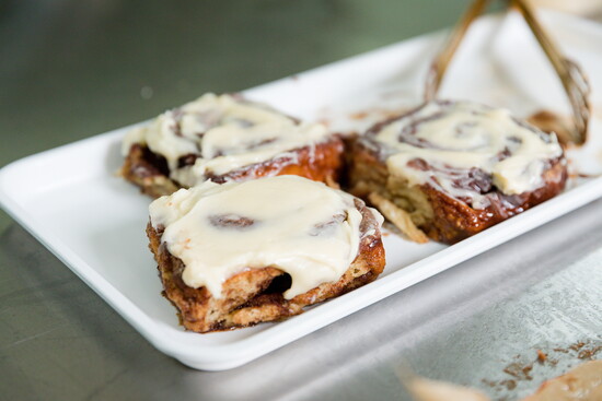 “We make large macarons in a variety of flavors. I try to keep 10-12 flavors in the case every weekend. We are also known for our coffee cake, cinnamon rolls, poppy tarts (hand pies), chocolate cake, and vegan oatmeal raisin cream pies. You wouldn’t know the oatmeal cream pies are vegan at all. The cookies are soft and chewy and the buttercream filling is so good. Our chocolate cake is very moist and perfectly chocolatey. Flavor and texture are very important to us.”