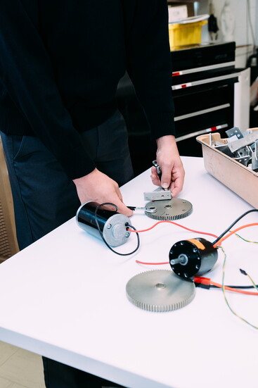 “It’s different sets of vibrations,” Falcone says. “A C could be a very fast and hard vibration, while a D could be very soft, or notes could be different speeds. The CPU tells each motor what to do, and the user learns which vibration matches each note.”