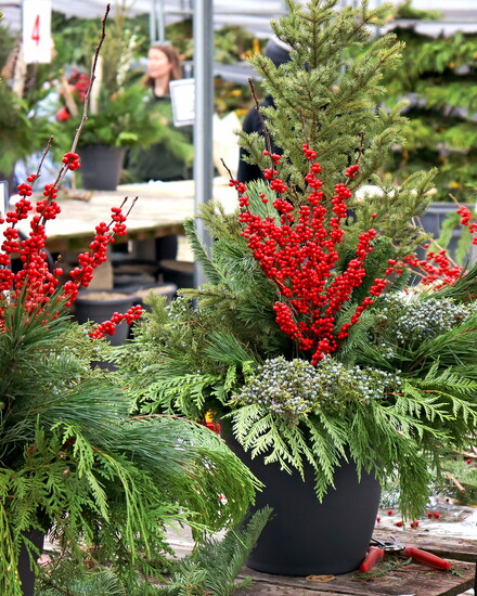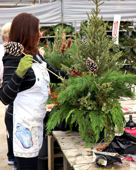 The Holiday Container Workshops have become a major attraction at Family Tree Nursery, where four days in November are dedicated to this popular event. All materials needed to create a stunning holiday container are provided, allowing participants to craft the perfect outdoor pot for the winter season. Many attendees come in groups with coworkers, friends, or family. It has also become a tradition for some to purchase the materials separately to host their own workshop at home or in their workplace.