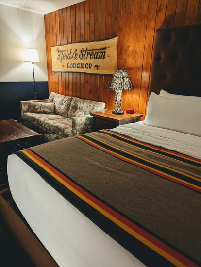 Aside from the obvious and applicable name of the magazine that launched in 1871—Field & Stream—fitting into the Montana cityscape, there’s an accessible and nostalgic nature to stepping foot in this first-ever lodge of its kind. Located in Bozeman, just under three hours southeast of Missoula, Field & Stream Lodge Co. is a real-life depiction of what lies inside those coveted pages of this richly illustrated and storied magazine.