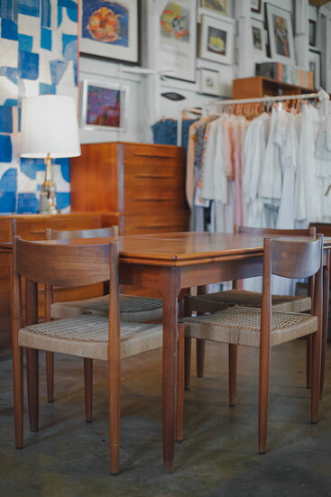 The tactful imagery used to tease the project conveys its special energy, one that permeates your senses the minute you step onto the property. On an unseasonably warm winter weekend, Petrick and Duncan welcomed the community into their creative sanctuary with fresh coffee, homemade pastries, and shopable seating areas for friends to “Chat on each other.”