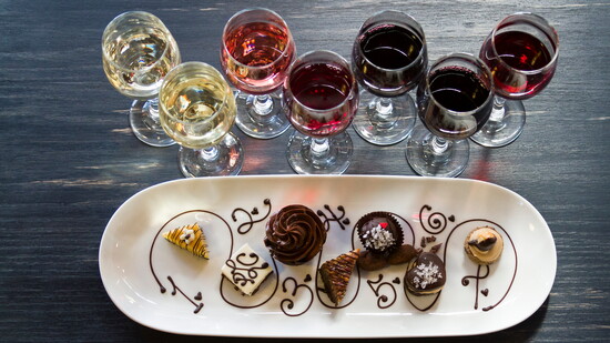 It's also important to match the sweetness of the wine with the sugar content of the chocolate. Dark chocolate is best paired with drier wines, while white and milk chocolate should be served with sweeter wines. These will enhance the flavors of both instead of competing against each other. And it’s always better to go a step up in sweetness than a level down.