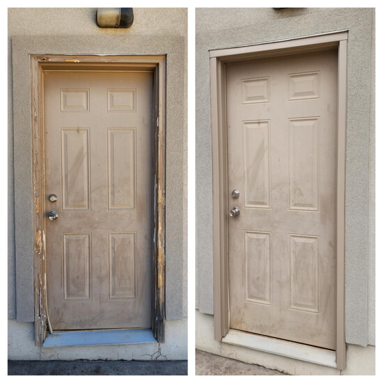 New Edge Designs specializes in repairing and upgrading exterior door trim by wrapping it in custom-formed metal. While the concept itself isn’t new, the execution is what sets the Andersens apart. “We can’t say we’ve invented this process,” O.P. explained. “But we found a way to do it in a way where it lasts a lot longer…so it can last up to 50 years. So there’s no maintenance whatsoever on your exterior door trim, and you can choose your color.”