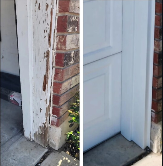 One of the most important steps happens before the metal is installed. If the wood beneath the trim is damaged, it’s repaired or replaced first. “We would replace whatever has rotted,” O.P. said. “We wouldn’t want to wrap that.”