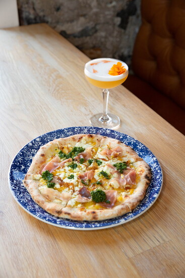 Apricot & Prosciutto Pizza + House Cocktail