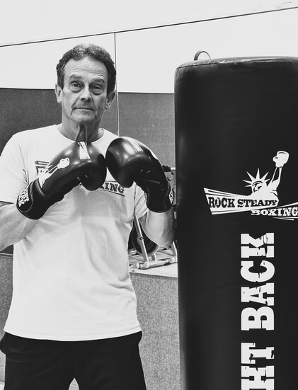 Mark opens sessions with a simple question—like “What’s your favorite color to paint a wall?”—that gets brains firing and voices projecting. From there, the session might mean boxing combinations (called out in words and numbers, because Parkinson's changes how the brain processes language), bag work, aquatic therapy, or a session led by a visiting therapist.