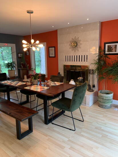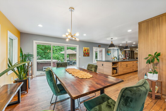 Rather than preserve a feature that didn’t belong, they chose to remove it entirely—replacing it with a large window that now frames their landscape. Deer and coyotes pass through the yard. The light shifts throughout the day. The dining space, once constrained, now feels expansive and intentional.