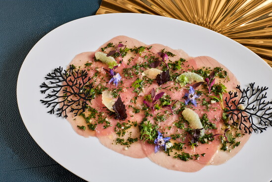 The restaurant is located within the Oceana Santa Monica—an ivy-covered all-suite hotel overlooking the Pacific that is owned by real estate developer and Brentwood resident Jim Lippman of JRK Property Holdings. His wife Linda, and their three children, daughter Alex Landy and brothers Danny and Matthew, are all involved in the business and have created La Monique in partnership with 34th Floor of Schulte Hospitality Group—envisioning it to be a modern clubhouse of sorts, with an intimate setting, maximalist design and flawless cuisine.