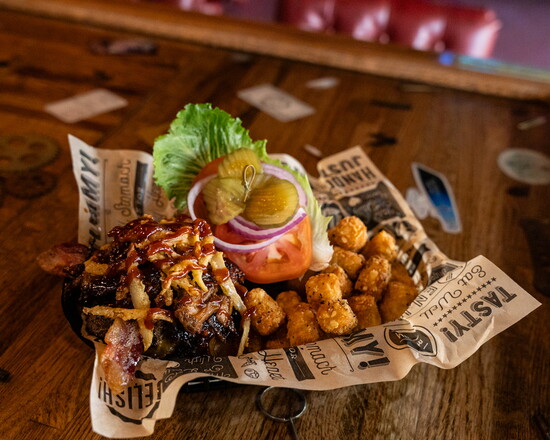 The food is a key component of the attraction. SteamWorks is a scratch kitchen, with weekly rotating specials, and beloved staples like the famous Johnny Cash burger, a half-pound masterpiece loaded with cheddar, bacon, house-made pulled pork that is slow cooked for six hours, onion straws, and their signature bourbon barbecue sauce.