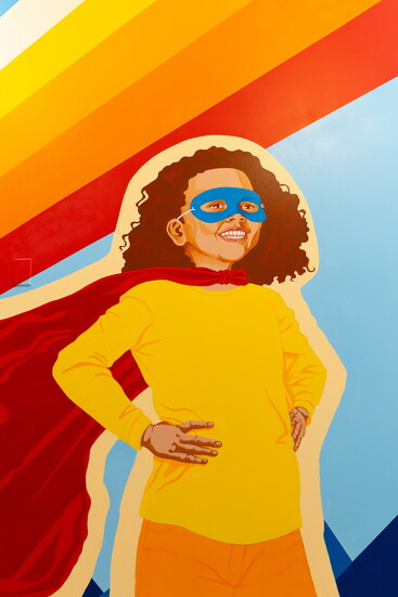“Painting the mural wasn’t just physically demanding (I’m never using scaffolding again),” Alonzo jokes, “it was emotionally heavy, too.” He wanted each brushstroke to offer empowerment to the kids who visit Life Stories under difficult circumstances. “No one comes to Life Stories for a good reason,” he says. “So I wanted the space to give them something that would change the color of their experience.”