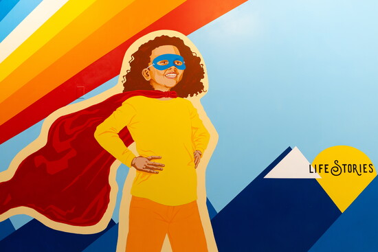 The creative process was both exhilarating and challenging. With guidance from Mattie and Susan, Alonzo envisioned a mural that would move from dark to light, a visual representation of the transformation Life Stories makes possible. Bold colors, playful shapes, and a rainbow-inspired palette symbolize inclusivity and hope, a visual reminder that every child who walks through the doors belongs and is seen.