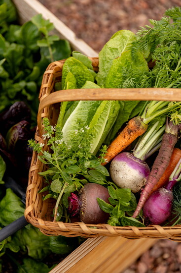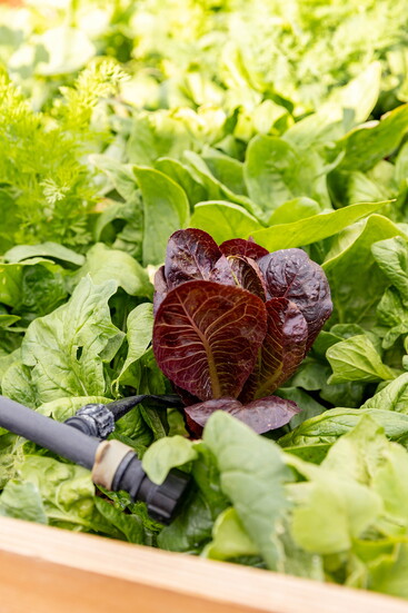In the winter, your leafy greens will continue to grow, along with your root crops. You can also grow leeks, onions and garlic and the same herbs you grew in the fall.
